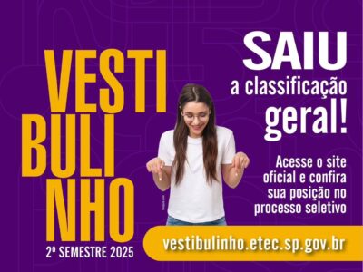 A classificação geral do processo seletivo das Etecs está disponível para consulta no site https://vestibulinho.etec.sp.gov.br/ Foi adiada para a próxima sexta-feira (18), a convocação de matrícula ao candidato aprovado no processo seletivo das Escolas Técnicas […]